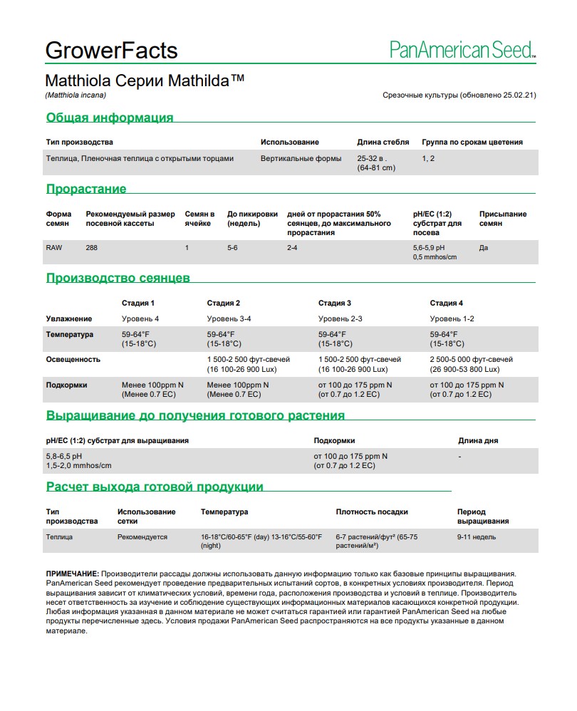 •  Маттиола, выращенная в теплице, отличается от маттиолы, выращенной в открытом грунте, более мягкими зелеными листьями.