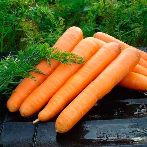 Морковь Экстремо F1. Гибрид включен в Госреестр по Северо-Западному (2) и Центральному (3) регионам. Рекомендуется для использования в свежем виде и зимнего хранения. Гибрид среднеспелый. Розетка листьев раскидистая. Лист длинный, зеленый до темно-зеленого, крупнорассеченный. Корнеплод от среднего до длинного размера, удлиненно-конический со слабым сбегом и тупым основанием (сортотип Берликум/Нантская). Сердцевина и кора оранжевая. Масса корнеплода 89-190 г. Вкусовые качества хорошие и отличные. Содержание сухого вещества 11,6-13,1%, общего сахара 7,0-7,8%, каротина до 17,7 мг на 100 г сырого вещества. Товарная урожайность 291-552 ц/га, на 50-90 ц/га выше стандартов Нантская 4 и Дордонь F1. Максимальная урожайность 1501 ц/га (Московская обл.). Выход товарной продукции 83-90%.Сильные листья с хорошим прикреплением позволяют осуществлять позднюю уборку.Устойчив к образованию трещин, механическим воздействиям и подмерзанию.Гладкий, без корневых волосков, корнеплод отличного качества.Красивый внутренний и внешний цвет.Подходит для длительного хранения.Более высокая устойчивость к побелению, чем у Маэстро F1.Резистентность: HR: Alternaria dauci / IR: Oidium, Pythium.