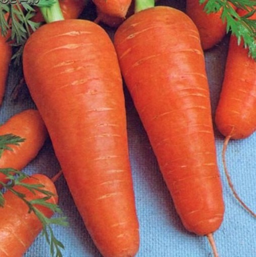 • Корнеплод короткий, конический с тупым кончиком, головка ровная. Сердцевина и кора оранжевые.