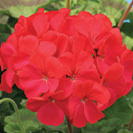 Пеларгония зональная Мирка F1.  Для листьев этой серии типично сочетание зеленой окраски с коричневым оттенком по краю. Цветки ярких окрасок образуют крупные соцветия, обильно цветут в течение всего сезона до самых морозов. Сорта ранние, компактные, с выразительной листвой, высоко устойчивы к вредителям и неблагоприятным погодным условиям.
