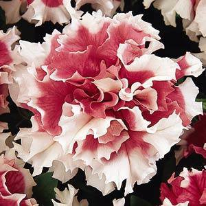 Петуния махровая крупноцветковая Пируэтт F1 (Petunia grandiflora Pirouette). Крупноцветковая махровая гибридная петуния с белой каймой по краю лепестков.