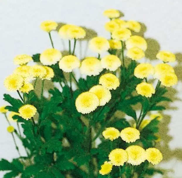 • На крепких цветоносах образуются многочисленные плотные соцветия – помпоны кремовых и желтых оттенков.