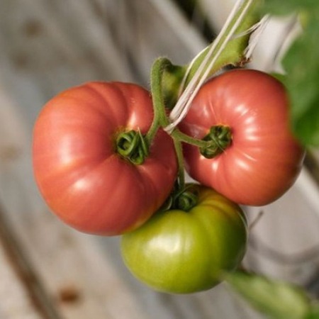 • Кожица тонкая, слабоблестящая. В незрелом виде окраска плода зелёная, без тёмного пятна у плодоножки. Вызревший помидор окрашивается в аппетитный розовый цвет.