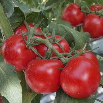 Томат Ред Ривер F1. Ранний индетерминантный гибрид томата (85-95 дней от всходов до начала созревания). Рекомендуется для выращивания в первом и втором обороте пленочных теплиц. Мощная, активная корневая система. Растение сильное, хорошо облиственное, лист от среднего до крупного, темно-зеленый, расположение полугоризонтальное. Первое соцветие закладывается над 9-11 листом, последующие через 3 листа. Соцветие простое, компактное с 6-8-ю плодами. При повышенных ночных температурах возможна закладка кистей промежуточного типа.Плоды округлые (индекс формы плода 0,9-1,0), глянцевые, плотные. В стадии технической спелости зеленые (без пятна), в стадии биологической спелости насыщенно красные. При высокой солнечной инсоляции плоды приобретают насыщенную вишнево-красную окраску. Средняя масса плода 140-160 г. Вкусовые и транспортабельные качества высокие. Гибрид высокоустойчив к вирусу мозаики томата, вертицилезу, фузариозному увяданию и кладоспориозу. Рекомендуемая густота посадки: 20-25 тыс/га