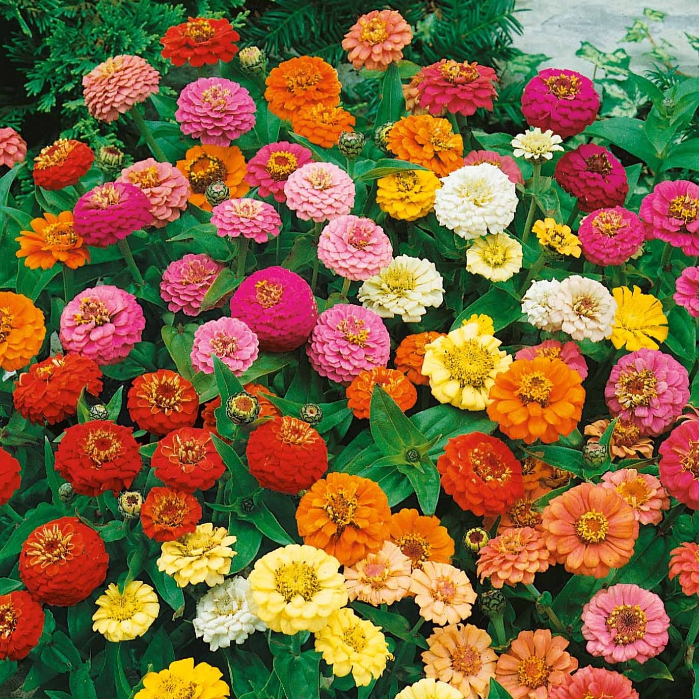 Цинния изящная Дюймовочка. Великолепная низкорослая смесь! Растение высотой около 20 см. Соцветия разнообразной окраски. Цветёт с июля по сентябрь. Широко используют для цветников и на срезку.