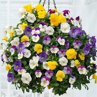 Виола ампельная Кул Вэйв (Viola x wittrockiana Cool Wave). Одна из самых лучших ранних ампельных виол, предназначена для осеннего и весенего производства.